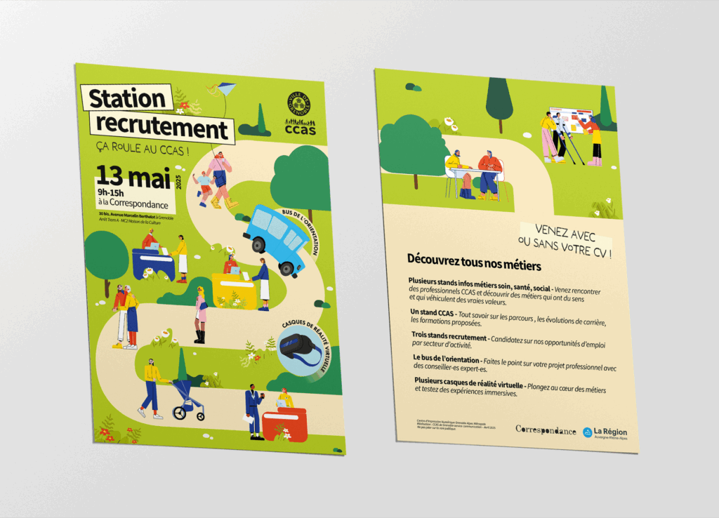 En alternance au CCAS de Grenoble depuis Septembre 2024, j’ai eu l’occasion de réaliser de nombreux support de communication.